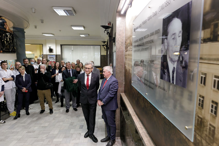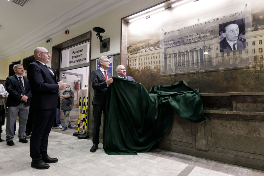 W piątek, 08 grudnia 2023, w Szpitalu Klinicznym Dzieciątka Jezus UCK WUM, odsłonięta została tablica upamiętniająca 130 rocznicę urodzin profesora Adama Grucy twórcy i wirtuoza, a także ambasadora polskiej ortopedii. Profesor był autorem blisko 200 prac naukowych ogłoszonych w 10 językach, trzytomowego podręcznika Chirurgia Ortopedyczna, wielu opracowań całokształtu leczenia schorzeń ortopedycznych, urządzeń medycznych, sposobów operacji, które służą medycynie do dziś. Dzięki staraniom i wsparciu prof. Adama Grucy w opracowaniu planów architektonicznych rozpoczęto po wojnie przygotowania do budowy kliniki ortopedii nazwanej Pałacem Grucy. Budynek, oddany do użytku w 1957 r. wciąż działa i wkrótce zostanie poddany renowacji w ramach rewitalizacji kampusu Lindleya. Klinika Ortopedii i Traumatologii Narządu Ruchu, której podwaliny stworzył prof. Gruca jest obecnie największą Kliniką ortopedyczną w Polsce, największą Kliniką w UCK WUM, w pełni profilową jednostką. Jest jednym z najważniejszych ośrodków ortopedycznych w Polsce.