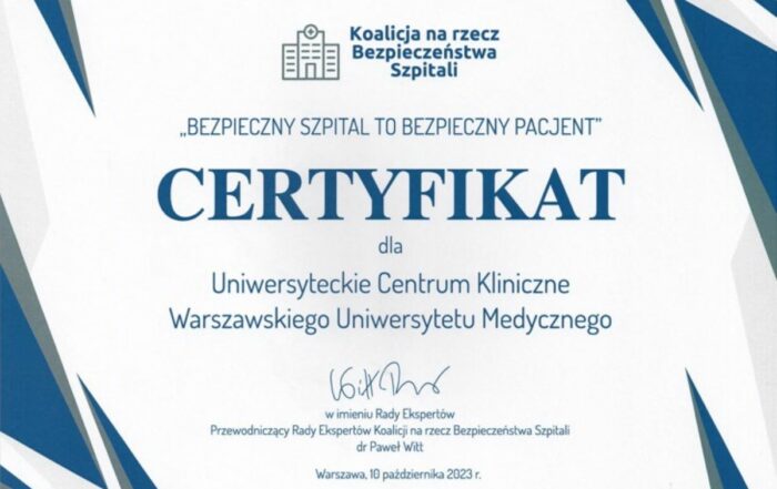 Uniwersyteckie Centrum Kliniczne w I edycji programu certyfikacyjnego „Bezpieczny szpital to bezpieczny pacjent” zostało wyróżnione certyfikatem Koalicji na rzecz Bezpieczeństwa [...]