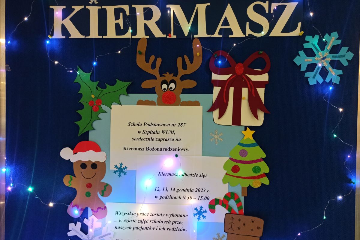 Uczniowie i Nauczyciele działającej w Dziecięcym Szpitalu Klinicznym UCK WUM Szkoły Podstawowej nr 287 zapraszają na doroczny kiermasz Bożonarodzeniowy. Znajdziecie tu wyjątkowe ozdoby świąteczne wykonane przez dzieci przebywające na oddziałach szpitalnych. Prace powstały w trakcie szkolnych zajęć wychowawczo – terapeutycznych. Można je nie tylko podziwiać ale i kupić w cenach dobrowolnych, od serca!. Kiermasz [...]