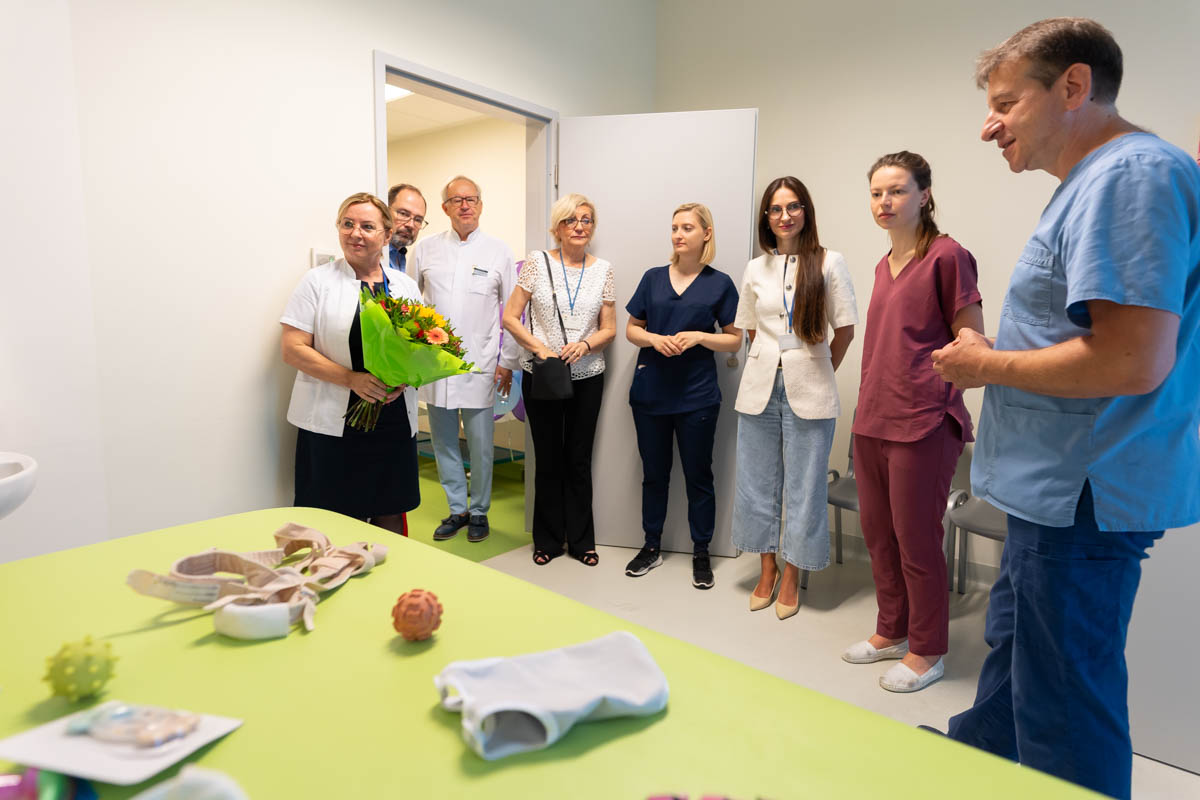 W odpowiedzi na potrzeby rodziców najmłodszych pacjentów opuszczających Klinikę Neonatologii i Chorób Rzadkich, dzięki staraniom zespołu, kierowanego przez prof. Bożenę Najman-Kociszewską powstał w DSK UCK WUM nowy gabinet terapeutyczny wspomagający rozwój noworodka na kolejnych etapach rozwoju.. Dzięki tym działaniom zwiększają się możliwości wczesnej, skutecznej, interdyscyplinarnej interwencji dla dzieci wymagających już od pierwszych dni życia intensywnej rehabilitacji. Największą grupą pacjentów wymagającą pomocy są skrajne wcześniaki, dzieci z rozszczepem kręgosłupa oraz przepukliną przeponową. Dzięki pracy zespołu składającego się z lekarzy neonatologów, neurologów, fizjoterapeutów wczesne wykrycie trudności w funkcjonowaniu dziecka umożliwia szybką ocenę ewentualnych problemów i ułatwia wprowadzenie szybkiej interwencji terapeutycznej dotyczącej rozwoju psychomotorycznego na kolejnych etapach życia. Dla wszystkich specjalistów pracujących z noworodkami jest to ogromnie cenne i motywujące, żeby wiedzieć jak rozwijają się ich podopieczni.