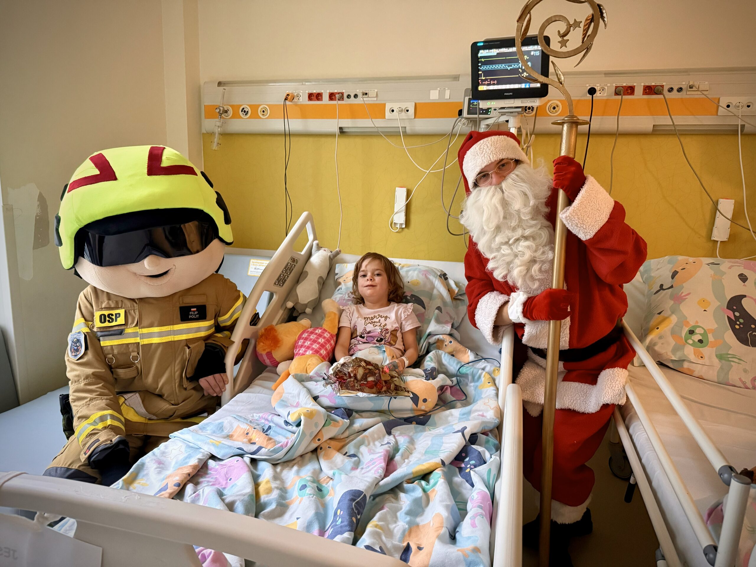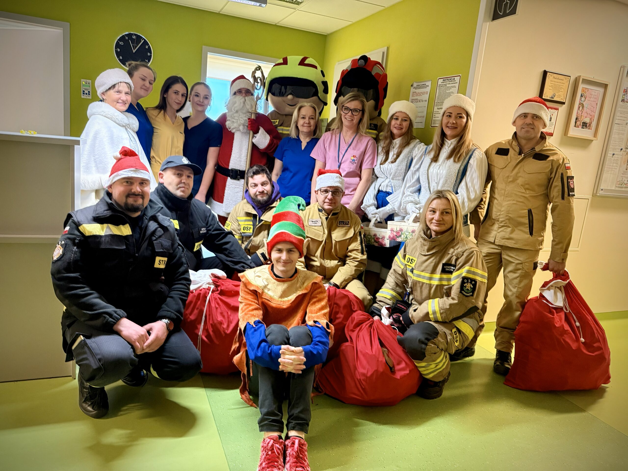 Do Dziecięcego Szpitala Klinicznego UCK WUM Święty Mikołaj dotarł przed czasem, bo już w środę 3 grudnia. Najwyraźniej w tym Szpitalu leczą się super grzeczne dzieci. Z wielkich worków wysypały się prezenty dla wszystkich przebywających na oddziałach pacjentów powodując ogrom radości i uśmiechów również na twarzach opiekunów, lekarzy, pielęgniarek i studentów. Z powodu braku śniegu Mikołaj i jego świta przybyli do Szpitala na wielkim amerykańskim wozie strażackim a towarzyszyło mu 7 innych Ochotniczej Straży Pożarnej z powiatu brzezińskiego oraz 3 wozy policyjne KRP 3 Warszawa. To był wyjątkowy dzień, pełen magii i dobrej energii. Mikołaj, jego Śnieżynki i wesoły Skrzat wlali ogrom otuchy w serca pacjentów.